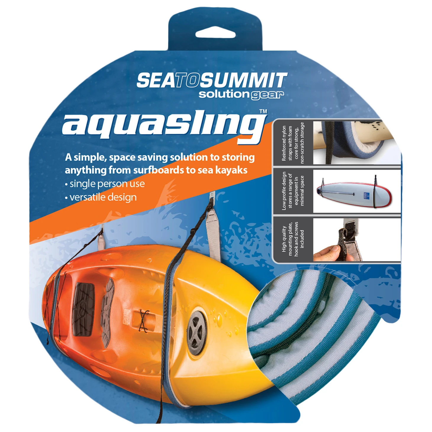 Mit der Aquasling von Sea to Summit hängst du dein Boot oder Board ganz easy an die Zimmer- oder Außenwand. Durch ihr simples Design kann eine einzelne Person das Wasserfahrzeug problemlos aufhängen und runterheben. Die Installation der Aquasling geht dank der enthaltenen Montageteile und Anweisungen einfach und schnell.