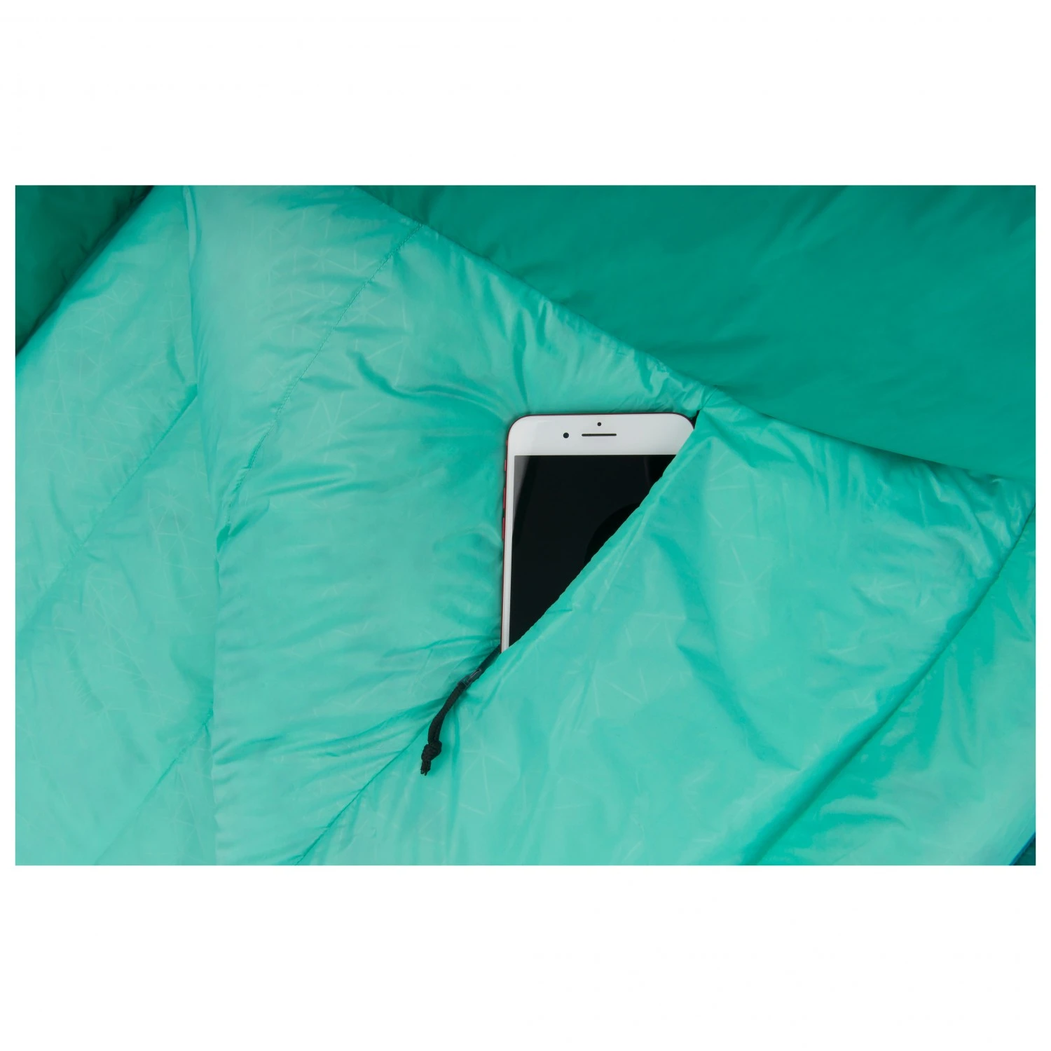 Eine Extraportion Daune und THERMOLITE Elemente im Fußbereich sind eine Kampfansage an kalte Füße. Entsprechend der weiblichen Anatomie ist der Schlafsack etwas breiter im Hüftbereich und schmaler an den Schultern.